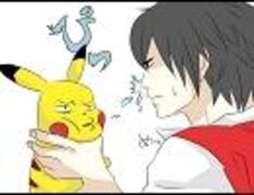【手描き】ピカチュウとレッドでキス唾