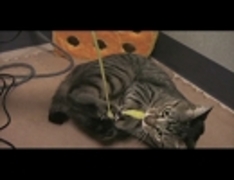ねこ、ねこじゃらしに掴まりぐるぐる回る