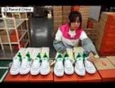 中国から救援物資 ナイキのようなシューズ 上海から成田へ