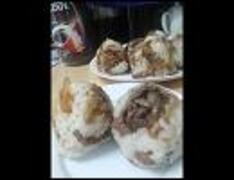 揚げ玉ねぎと牛肉のおにぎりをつくるお♪(ぅ・ω・)ぅ