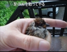 クモの巣にかかった子スズメ
