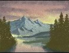 ボブの絵画教室を見ながらペイントで描く「灰色の山並み」
