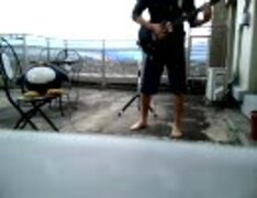 ベランダで演奏の人