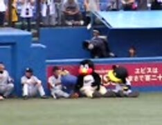 20100626神宮球場対タイガース戦試合前のつば九郎とトラッキー