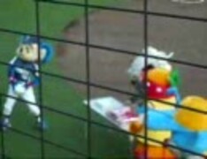 ドアラ、賞品のお米を奪おうとしてマッピーとインディに止められる