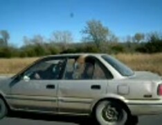 【シュール】普通乗用車に馬が乗っている