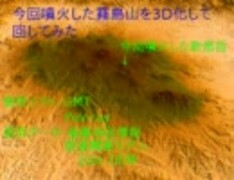 今回噴火した霧島山を3DCG化して回転させてみた
