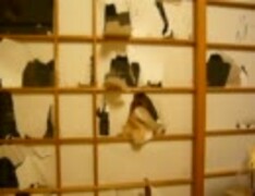 障子で遊ぶ猫