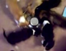 回転しながらエサを食べる仔犬たち
