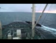 2011.02.09 プロペラと舵狙いロープを曳航し、日新丸前に蛇行するゴジラ号