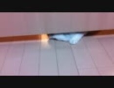 ドアの下を懸命に潜ろうとする鬼猫
