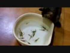 テナガエビに興味深々のうちの猫