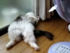 扇風機で涼む猫