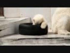 ホッキョクグマの赤ちゃん。 タイヤがお気に入り。