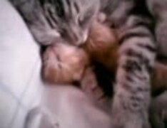 【転載】猫の親子が昼寝【Cat mom hugs baby kitten】