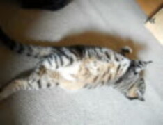 うちの猫(プー・♀・8歳)変な寝方+しっぽでお返事