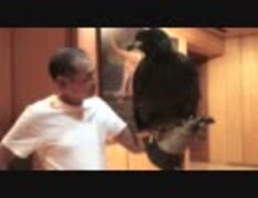 ハクトウワシの幼鳥の訓練。タイの鷹匠。