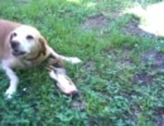 あー、わんこがリス食ってる
