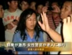 【新唐人】群衆が激昂 女性警官が老人に暴行