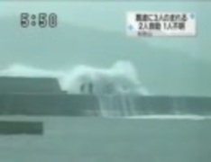 DQN3人 台風の日 防波堤で度胸試し!結果:海にのまれる