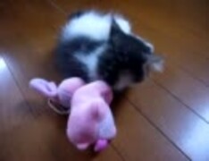 ぬいぐるみで遊ぶ子ぬこ♡