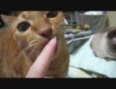 ネコさんが一生懸命指をぺろぺろしてくれる