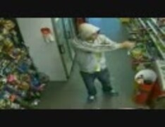 拳銃を持った強盗を客たちが取り押さえる