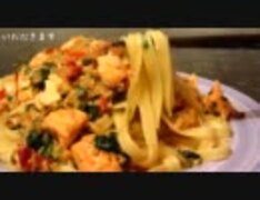 鮭とほうれん草のピリ辛パスタ