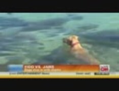 犬が海に飛び込みサメ退治?