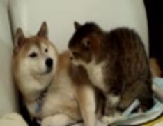 ぬこに怒られしゅんとなる柴犬