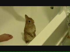 シャワーを浴びて仁王立ちで固まるウサギ