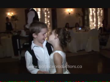 子供のカップルが結婚式でチュウ
