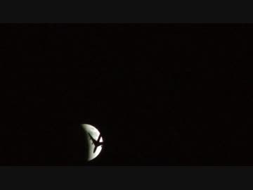 月食を横切る飛行機