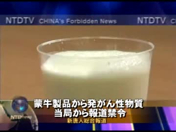 【新唐人】蒙牛製品から発がん性物質 当局から報道禁令