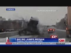 中央分離帯を破壊しながら対向車線から巨大トラック