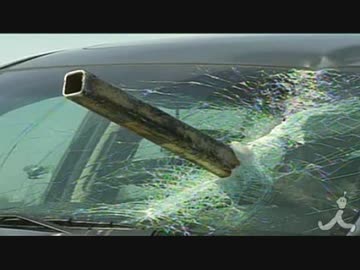 危機一髪、車のフロントガラスに金属棒