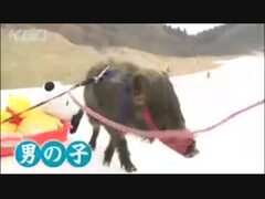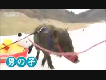 人気者!イノシシがソリをすーい