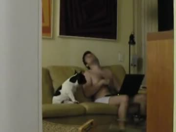 飼い主のマネをするフレンチブルドッグ