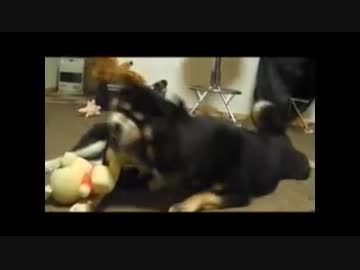 ヌイグルミで遊ぶ柴犬