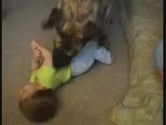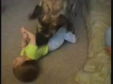 巨大犬と遊ぶ赤ちゃん