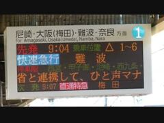 【阪神】天理臨・臨時快速急行、芦屋駅での発車案内標が映っているだけ