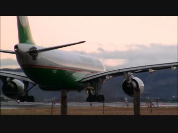 仙台空港を飛び立つエバー航空機