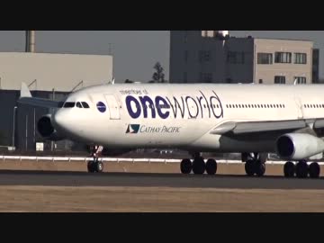 キャセイパシフィック エアバスA340-300 ワンワールド塗装機の着陸