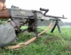 軽機関銃の射撃訓練(装填、動作不良の対処および銃身交換の訓練)