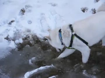 氷水で遊ぶ 北海道犬 昴流