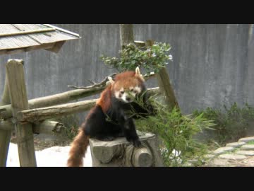 餌をむさぼるレッサーパンダを眺める動画