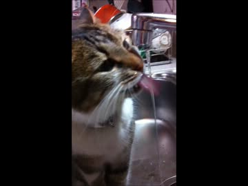 蛇口から水を飲む猫2匹