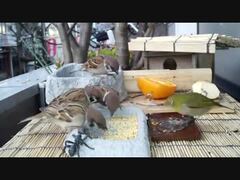 ベランダ食堂 ショート(メジロたんとスズメたん)再アップ