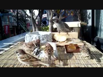 ベランダ食堂ショート2 (すずめ と ひよどり)