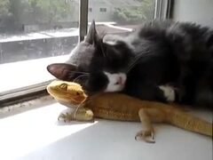 猫と巨大トカゲの ひなたぼっこ